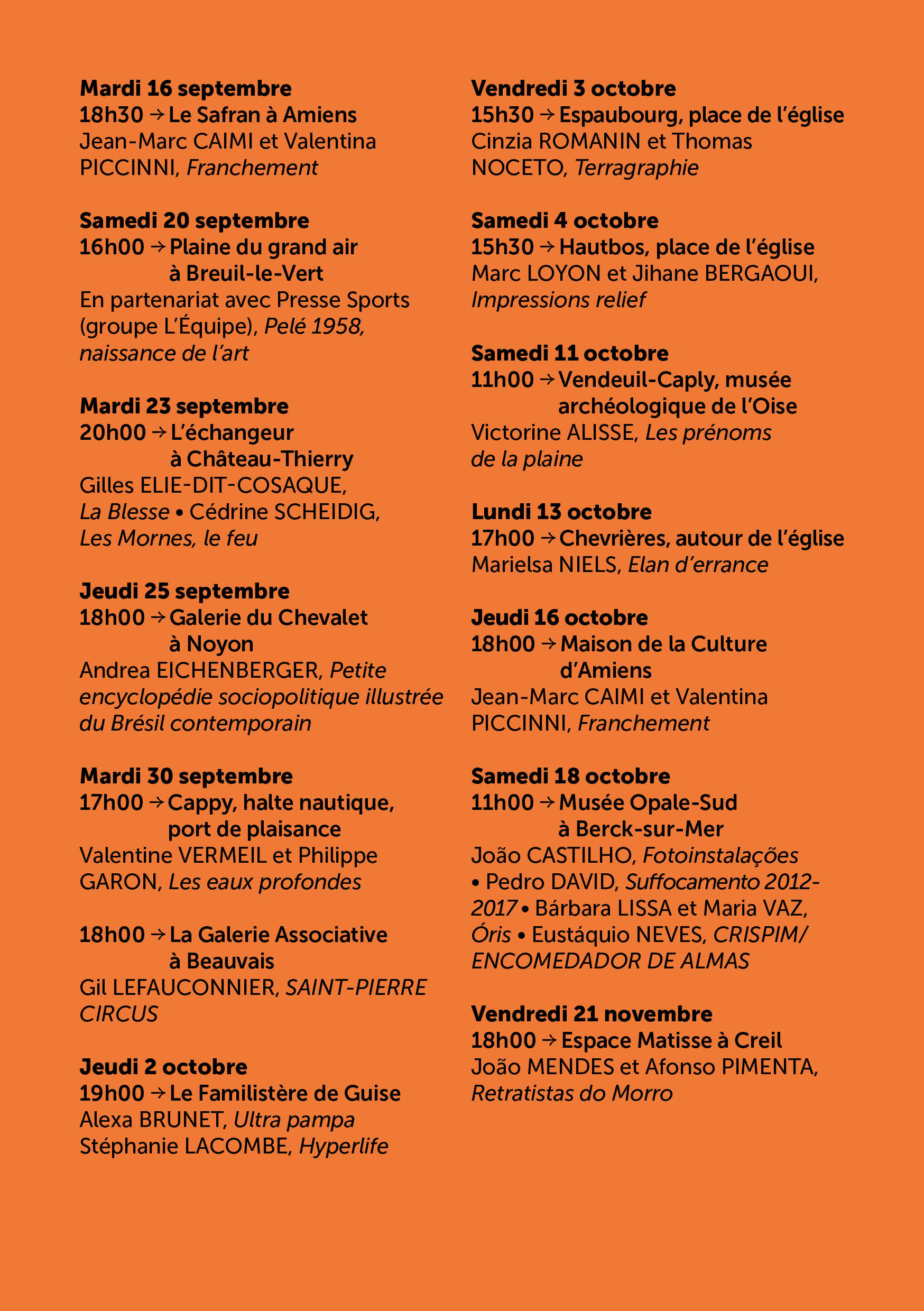 15h00 → Rendez-vous sur le Parvis de la gare de Beauvais. Visite guidée en compagnie de la commissaire et d’un médiateur du Quadrilatère, Centre d’art de Beauvais. Emmanuelle Halkin partagera ses coups de cœur et son regard expert sur les démarches des artistes exposés en différents points de la ville.